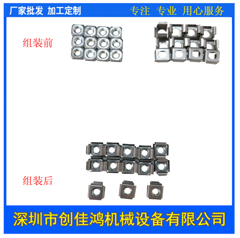 1、代替人手完成螺母取、放、壓入等動(dòng)作的自動(dòng)化裝配。螺母、彈片的輸送、組裝一次完成,提高了生產(chǎn)效率!