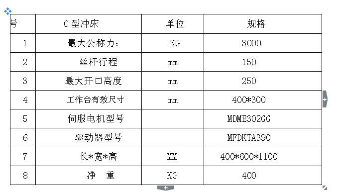 二:機(jī)器設(shè)備優(yōu)勢(shì)在于:1提高生產(chǎn)效率。行程長(zhǎng)度設(shè)定為生產(chǎn)必要的下限值?删S持與加工內(nèi)容相適合的成型速度。2制品精度高。通過(guò)閉環(huán)反饋控制,始終保證下死點(diǎn)的精度。抑制產(chǎn)品出毛邊,防止不良產(chǎn)品的產(chǎn)生。3噪聲低、模具壽命長(zhǎng)。通過(guò)低噪音模式(即降低滑塊與板料的接觸速度),與通過(guò)機(jī)械壓力機(jī)相比,大幅減少噪音。而摸具的振動(dòng)小,壽命長(zhǎng)。4滑塊運(yùn)動(dòng)的可控制性。使用者可利用此特點(diǎn)編制出適合于加工工藝的滑塊運(yùn)動(dòng)方式,有效提高產(chǎn)品的精度和穩(wěn)定性,提高摸具壽命及生產(chǎn)率,而且可實(shí)現(xiàn)靜音沖裁,甚至可以擴(kuò)大加工范圍(如鎂合金的沖壓加工等)。適于沖裁、拉深、壓印和彎曲等工藝,以及不同材料的特性曲線。如可將滑塊運(yùn)行停止保壓,其目的是提高制件的成型質(zhì)量。5節(jié)能環(huán)保。取消了傳統(tǒng)機(jī)械壓力機(jī)的飛輪、離合器等耗能元件,減少了驅(qū)動(dòng)件,簡(jiǎn)化了機(jī)械傳動(dòng)結(jié)構(gòu);潤(rùn)滑油量少,行程可控;由于電力消耗少,因此運(yùn)行成本也大幅度降低。